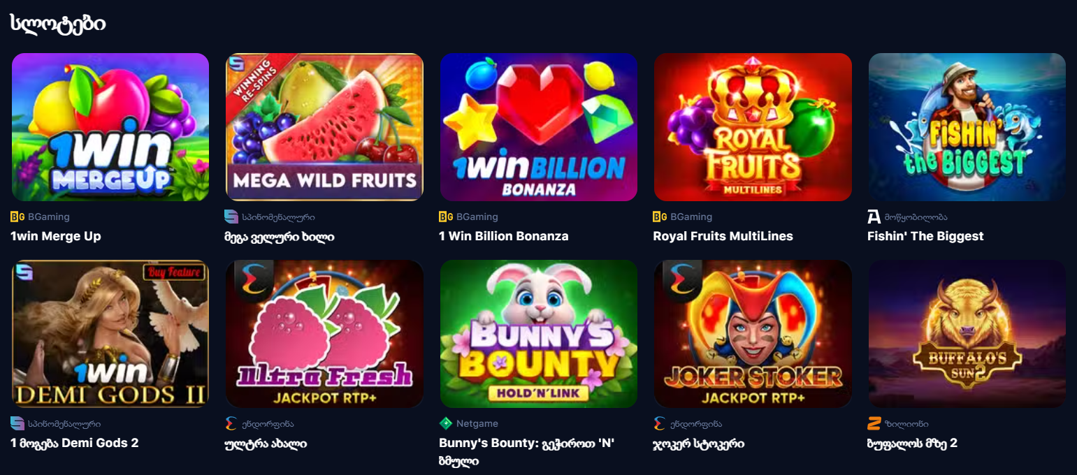 სათამაშო აპარატები და თამაშები 1Win-ში