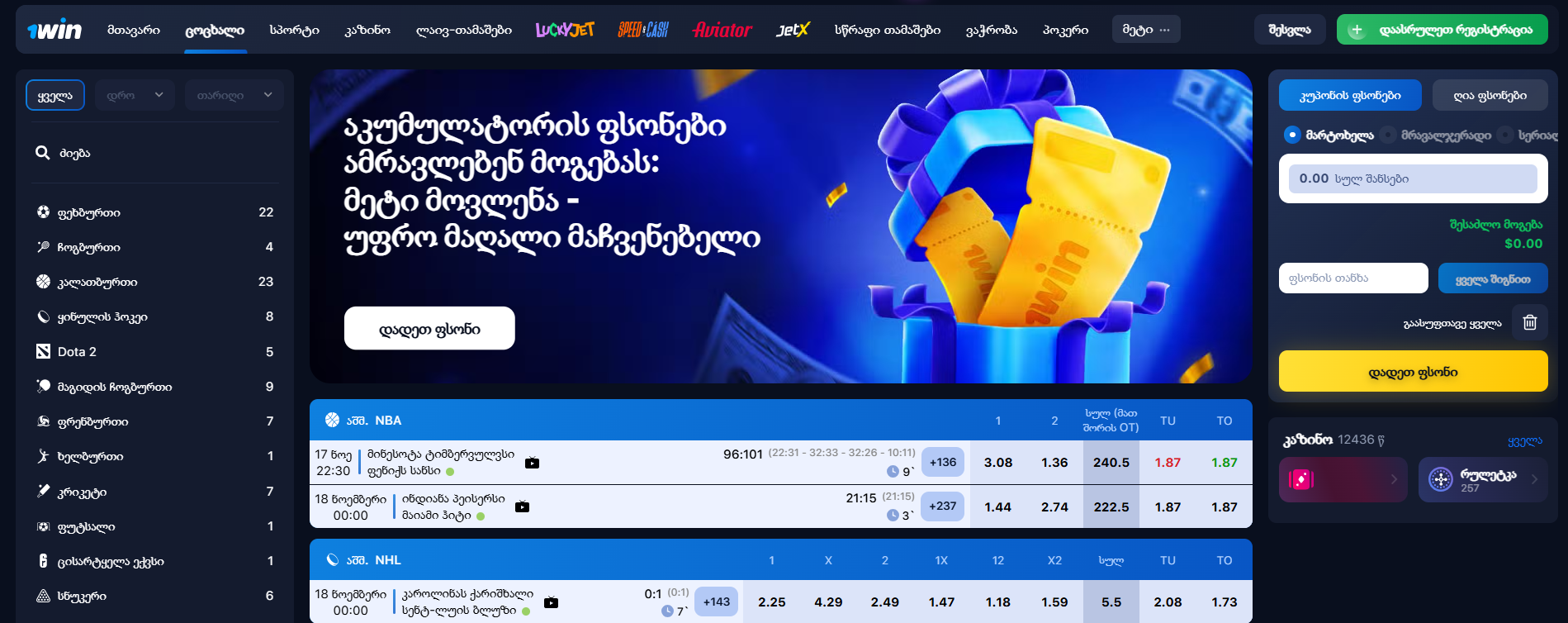 ტოტალიზატორი 1Win საქართველოში